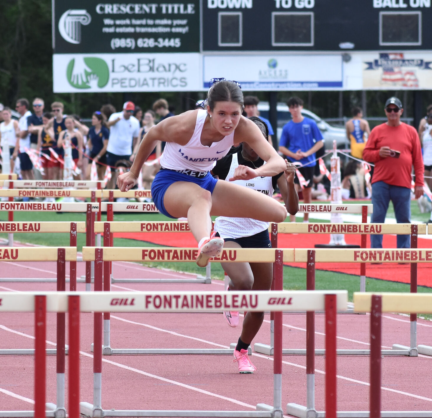 At the St. Tammany Parish Championships, Mandeville sophomore Mackenzie Hayes excelled in her new Class 5A environment, winning the 100-meter hurdles and 300-meter hurdles. Her performance not only secured Overall MVP honors but also helped Mandeville clinch the girls' team title. With personal bests of 14.32 seconds in the 100 hurdles and 44.56 seconds in the 300 hurdles, she also set a new school record in the latter. Senior Chloe Gallien and sophomore Maxwell Newman also contributed to Mandeville's success with impressive individual performances. Salmen's boys' team claimed victory, ending Slidell's dominance.