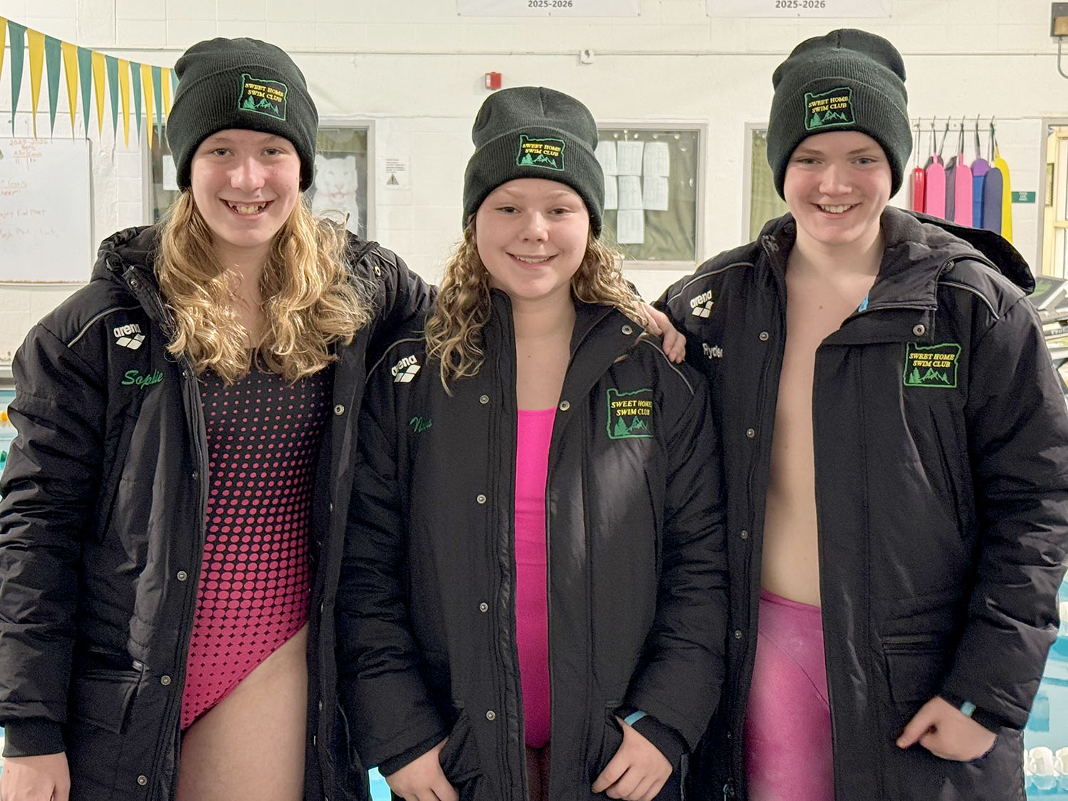 Sweet Home Swim Club athletes Novaleigh Adams, Sophie Burns, and Ryder Parr showcased their skills at the 11-14 Oregon State Championships held March 6-8. Burns, 12, had an impressive performance, placing in the top 10 for five events, while also competing at the Northwest Age Group Regionals soon after. Adams, also 12, excelled in her first state meet with several personal bests, including a significant time drop in the 200 Individual Medley. Parr, 13, also dropped time in all his races, demonstrating strong performances in the 200 and 500 freestyle events.